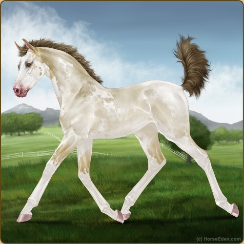 Color: Amber Champagne Roan Sabino
