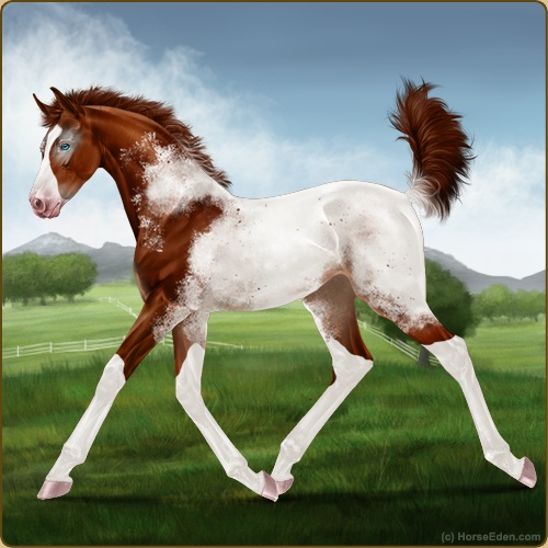 Color: Chestnut Splash White Near Fewspot Appaloosa