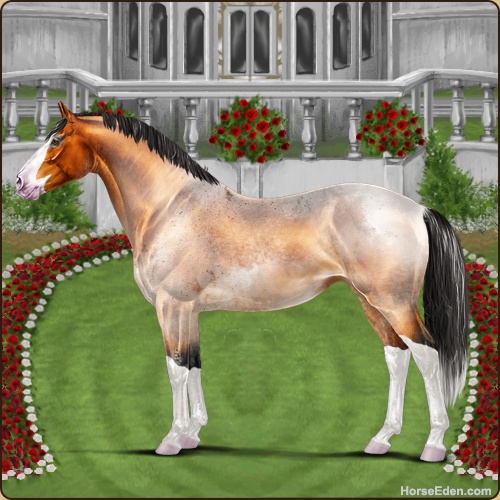 Color: Copper Bay Roan Splash White