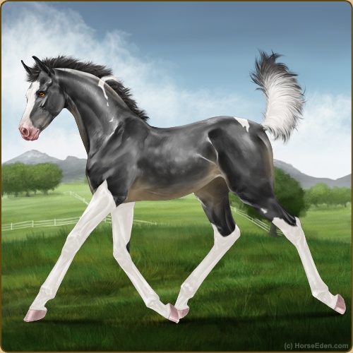 Color: Smokey Black Tobiano Sabino