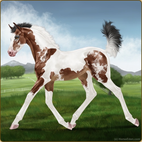 Color: Mahogany Bay Tobiano Splash White Sabino