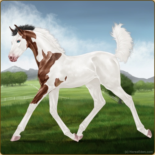 Color: Mahogany Bay Tobiano Splash White Frame Varnish Frost Appaloosa