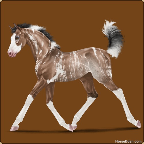 Color: Mahogany Bay Dun Tobiano Splash White Rabicano Brindle