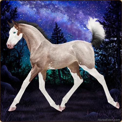Color: Mahogany Bay Roan Splash White Sabino