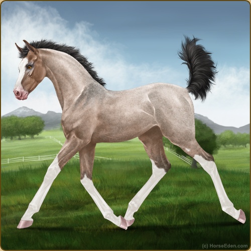 Color: Mahogany Bay Roan Dun Sabino