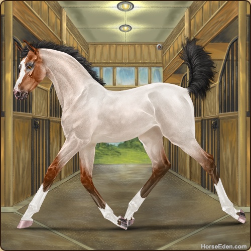 Color: Light Bay Roan Rabicano Varnish Appaloosa
