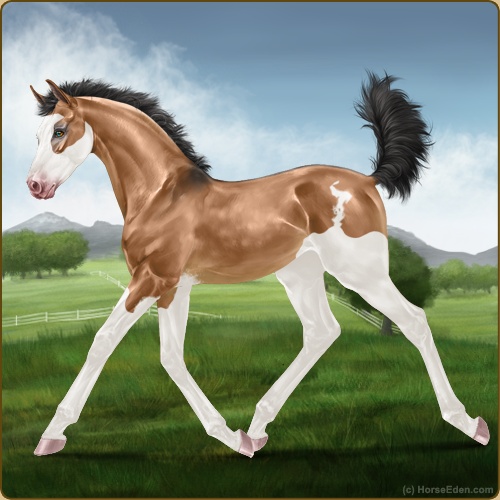 Color: Light Bay Dun Splash White SabinoHorse Nbr: 42296380Breed: Sport PonySex: FillyBirthdate: October 7, 2025Age: 1Birth Year: 195Height: 10.1 Hands