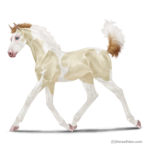 Color: Perlino Dun Tobiano Splash White