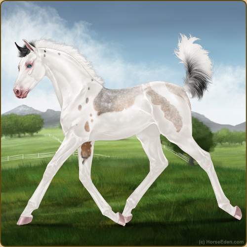 Color: Light Bay Roan Dun Tobiano Splash White Sabino Rabicano Snowflake Appaloosa