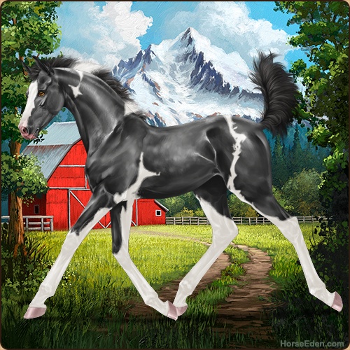 Color: Smokey Black Tobiano Sabino