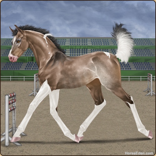 Color: Brown Dun Tobiano Splash White Rabicano