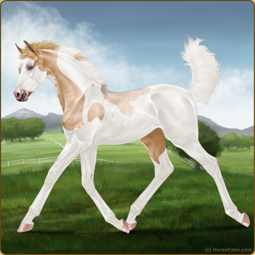 Color: Flaxen Red Roan Dun Tobiano Splash White Rabicano