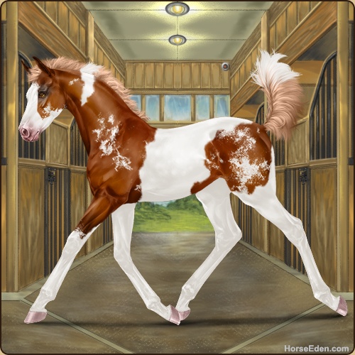Color: Flaxen Chestnut Tobiano Splash White Sabino