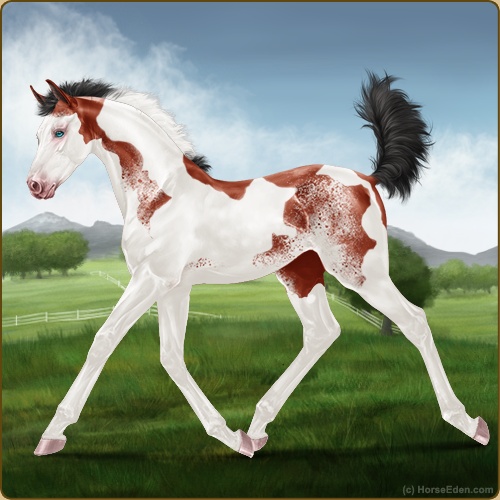 Color: Blood Bay Tobiano Splash White Sabino Varnish Appaloosa