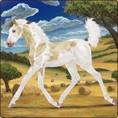 Color: Amber Creme Pearl Tobiano Splash White Sabino