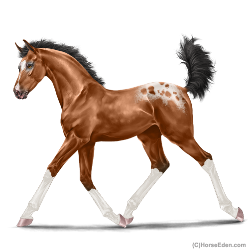 Color: Light Bay Varnish Blanket AppaloosaHorse Nbr: 42323101Breed: KnabstrupperSex: FillyBirthdate: October 12, 2025Age: 1Birth Year: 195Height: 10 Hands