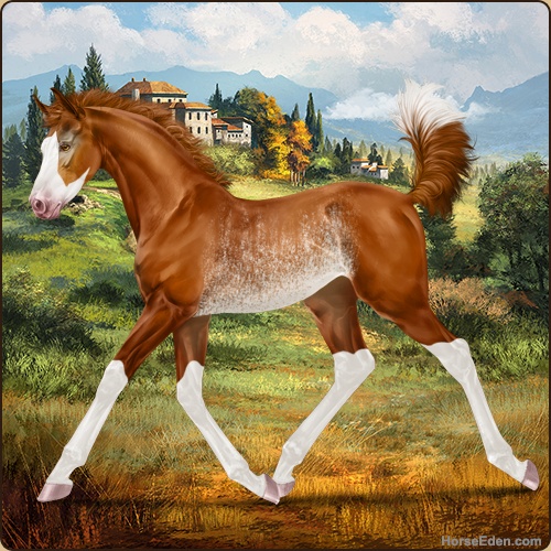 Color: Chestnut Splash White Rabicano Varnish AppaloosaHorse Nbr: 42329719Breed: Sport HorseSex: FillyBirthdate: October 13, 2025Age: 1Birth Year: 195Height: 10.0 Hands