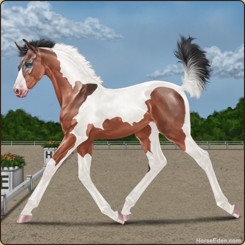 Color: Blood Bay Dun Tobiano Splash White