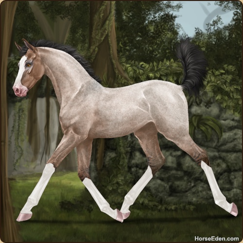 Color: Mahogany Bay Roan Dun Sabino
