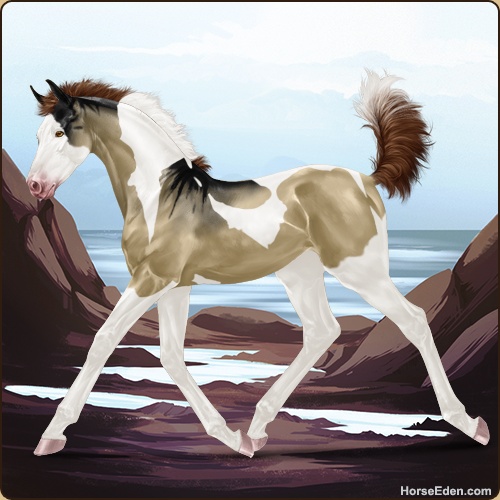 Color: Dark Red Dun Tobiano Splash White