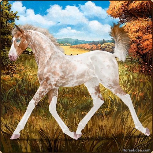 Color: Red Roan Splash White Varnish Frost Appaloosa