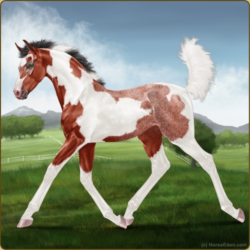 Color: Blood Bay Tobiano Frost Appaloosa