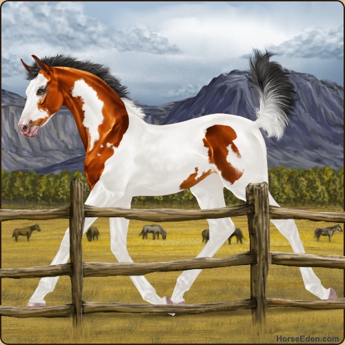 Color: Copper Bay Tobiano Sabino Frame