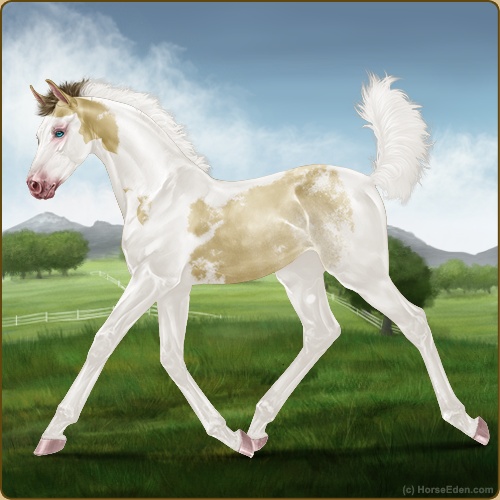 Color: Amber Champagne Tobiano Splash White Sabino Rabicano
