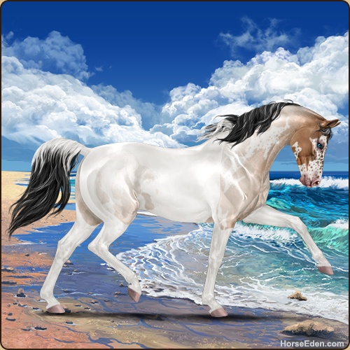 Color: Light Bay Roan Dun Tobiano Frame