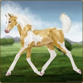 Name: Wild Dreams Age: 2 Mare Color: Palomino Tobiano Breed: Appendix Quarter Horse Foal Rating: E/W/E |  |