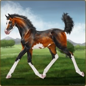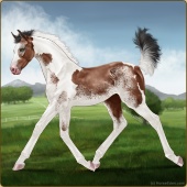 Name: BatsI X Alici 197Age: 2 Mare Color: Blood Bay Tobiano Sabino Breed: Appendix Quarter Horse Foal Rating: E/E/E |  |