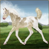 Name: ♞ JR Honey Dream EEW SbAge: 1 Filly Color: Silver Buckskin Sabino Breed: Appendix Quarter Horse Foal Rating: E/E/W |  |