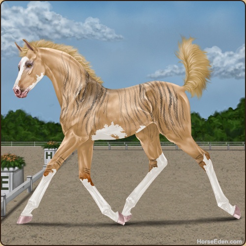 Color: Flaxen Red Dun Sabino Brindle