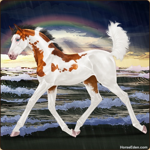 Color: Copper Bay Tobiano Splash White Sabino