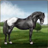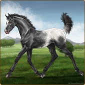Name: ✠Little JohnAge: 3 Stallion Color: Black Fewspot Appaloosa Breed: Knabstrupper Foal Rating: Sub/W/S |  |