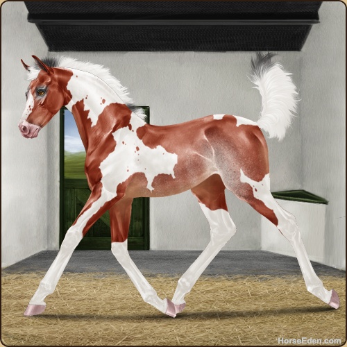 Color: Blood Bay Tobiano Splash White Rabicano