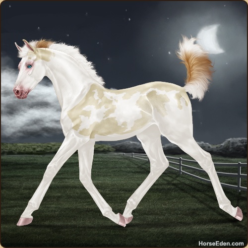 Color: Perlino Dun Tobiano Splash White Rabicano Frame
