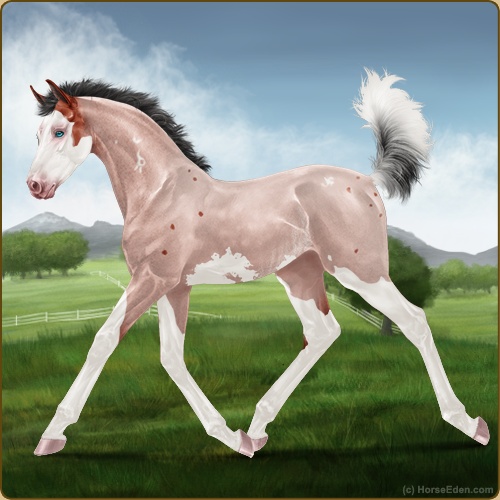 Color: Blood Bay Roan Splash White Sabino Rabicano Frame