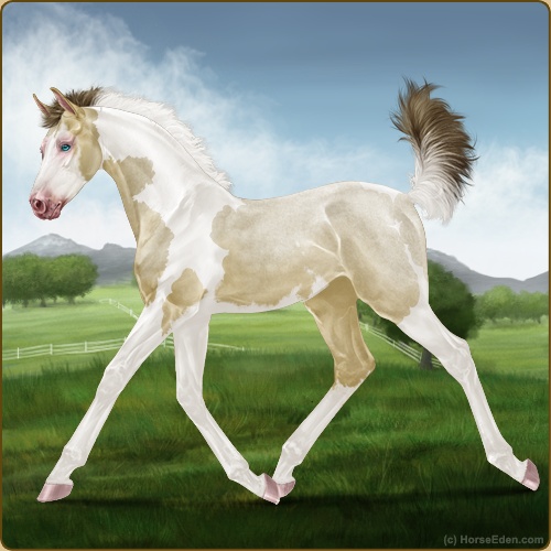 Color: Amber Champagne Roan Tobiano Splash White