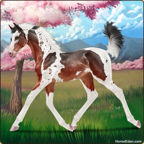 Color: Blood Bay Tobiano Splash White Sabino Rabicano