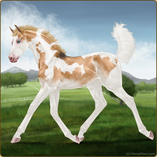 Color: Flaxen Red Dun Tobiano Splash White Sabino