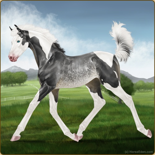 Color: Black Tobiano Splash White Rabicano