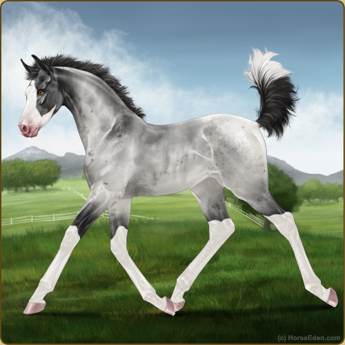Color: Smokey Blue Roan Splash White