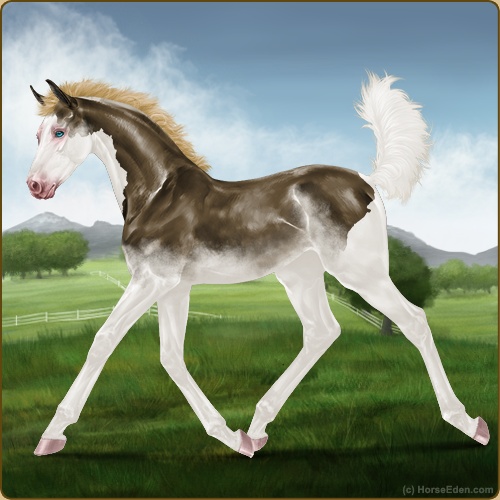 Color: Dark Flaxen Liver Chestnut Splash White Sabino