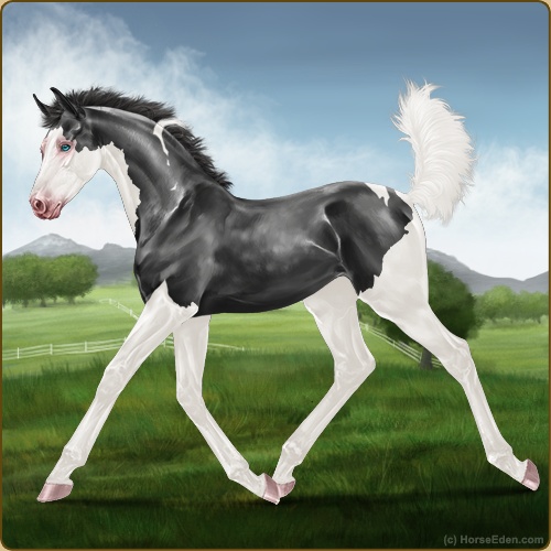 Color: Smokey Black Tobiano Splash White