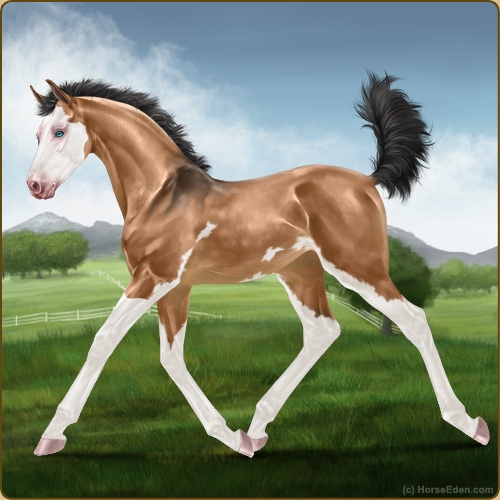Color: Light Bay Dun Splash White Sabino