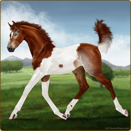 Color: Chestnut Tobiano Rabicano