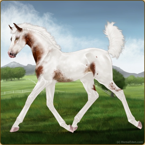 Color: Chestnut Sabino Varnish Fewspot Appaloosa