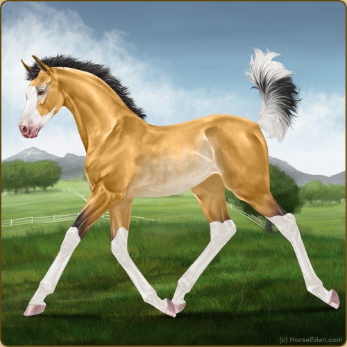 Color: Golden Buckskin Splash White Rabicano