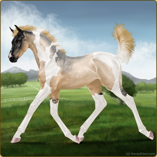 Color: Flaxen Red Roan Dun Tobiano